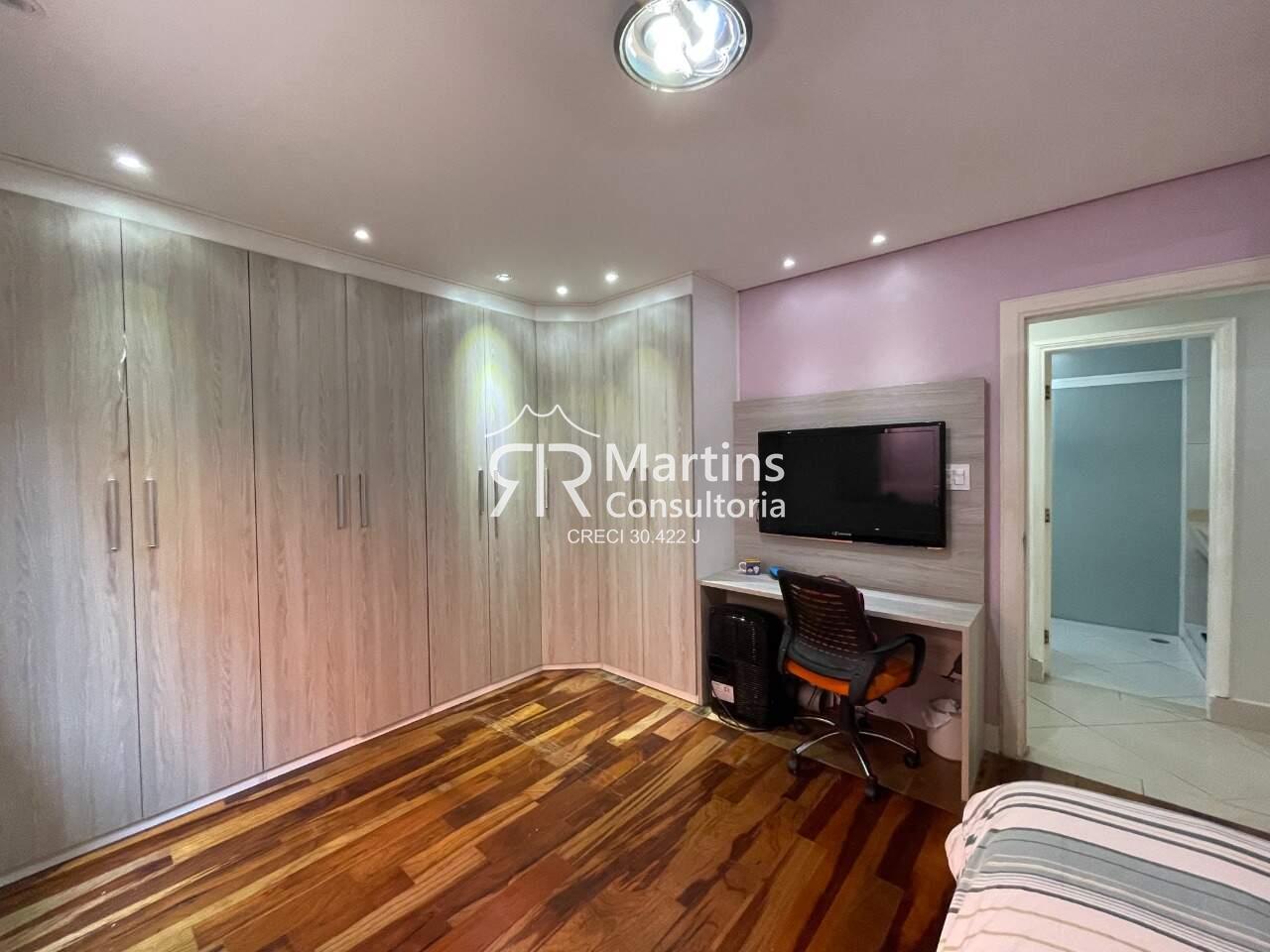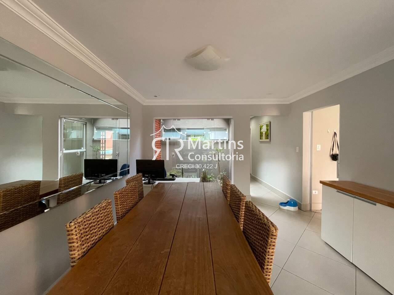 Possui 3 dormitórios, sendo 1 suíte com closet, banheiro social, sala de TV, jardim de inverno, copa cozinha planejada, piscina, edícula com dormitório e 4 vagas de garagem.