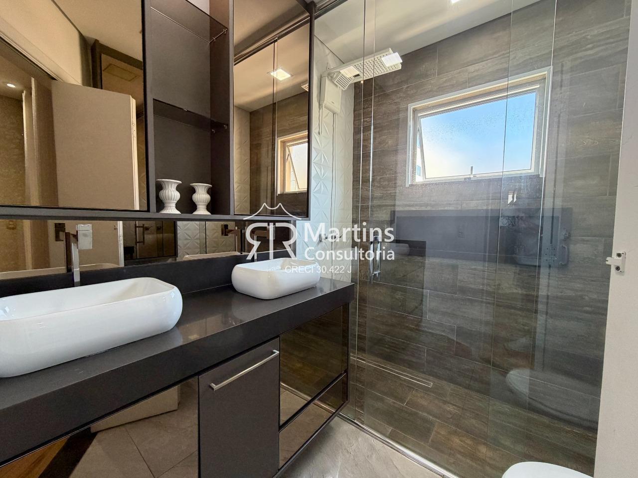 Possui 3 dormitórios planejados, sendo 1 suíte com closet e sacada, escritório, 1 banheiro social, sala com varanda envidraçada, área de iluminação, cozinha planejada, lavabo, área de serviço planejada, área gourmet planejada, escritório com lavabo e 3 vagas de garagem.
